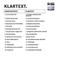 verteilen ohne zu verklumpen. Die Deocreme ist außerdem zu 100% natu-rlich, kommt im plastikfreien Glastiegel und hinterlässt keine Spuren auf der Kleidung. Bereits eine erbsengroße Portion