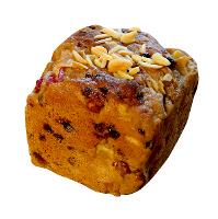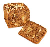 Boskoop-Äpfeln und gerösteten Haselnüssen, die reichlich drin sind. Dekoriert mit Mandelstiften. Ein Verzehrvorschlag: die Scheiben toasten und mit Vanillesoße servieren - das schmeckt wie