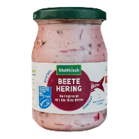 HERINGSHAPPEN ohne Haut 37% (HERING 98%****, Wasser, Rohrzucker , Salz, Säuerungsmittel: Essigsäure), Rote Bete* 17%, Rapsöl*, Trinkwasser, Gurken*, Rohrzucker*, Zwiebeln*, Äpfel getrocknet*, Sonnenblumenprotein*, Kräuter*, Gewürze* (u.a. Kümmel, Nelken), Salz, SENFSAATEN*, Stärke*, Branntweinessig*, Kräuteressig*, Verdickungsmittel: Guarkernmehl*, Johannisbrotkernmehl*.| Energie | Fett | gesättigte Fettsäuren | Kohlenhydrate | Zucker | Eiweiss | Salz |