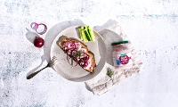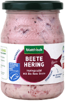HERINGSHAPPEN ohne Haut 37% (HERING 98%****, Wasser, Rohrzucker , Salz, Säuerungsmittel: Essigsäure), Rote Bete* 17%, Rapsöl*, Trinkwasser, Gurken*, Rohrzucker*, Zwiebeln*, Äpfel getrocknet*, Sonnenblumenprotein*, Kräuter*, Gewürze* (u.a. Kümmel, Nelken), Salz, SENFSAATEN*, Stärke*, Branntweinessig*, Kräuteressig*, Verdickungsmittel: Guarkernmehl*, Johannisbrotkernmehl*.Energie | Fett | gesättigte Fettsäuren | Kohlenhydrate | Zucker | Eiweiss | Salz |