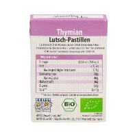 Geliermittel: Gummi arabicum*, Zucker*, Glukosesirup*, Bienenhonig* (7.5%), Isländisch Moos Extrakt* (1.4%), Orangenöl*, Tonkaextrakt*, Thymianöl* (0.1%), Zitronenöl*, Vanilleextrakt*, Spearmintöl*, Majoranöl*, Trennmittel: Carnaubawachs*Energie | Fett | gesättigte Fettsäuren | Kohlenhydrate | Zucker | Ballaststoffe | Eiweiss | Salz |